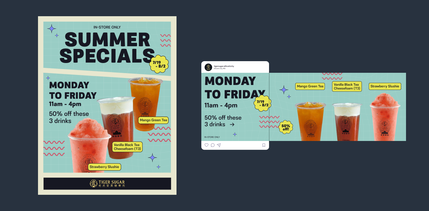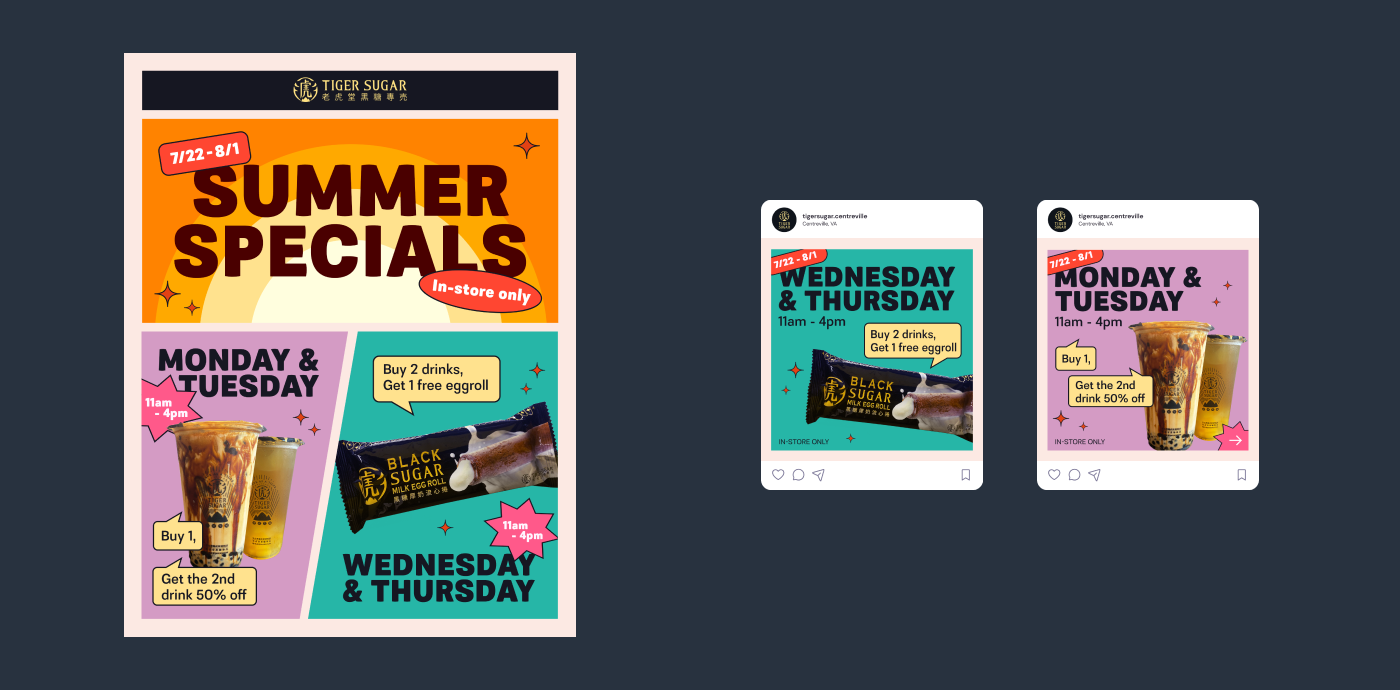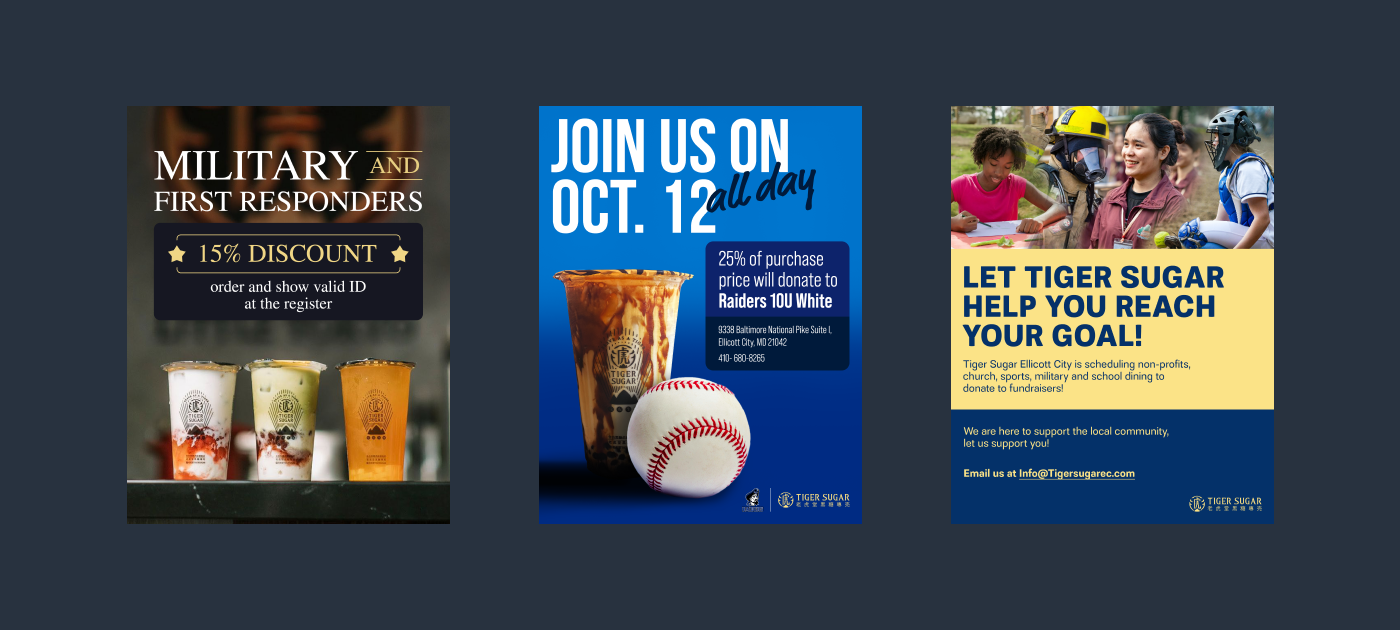 To promote awareness and engagement for Tiger Sugar Centreville and Ellicott City - manage the social media account and create graphics and flyers.